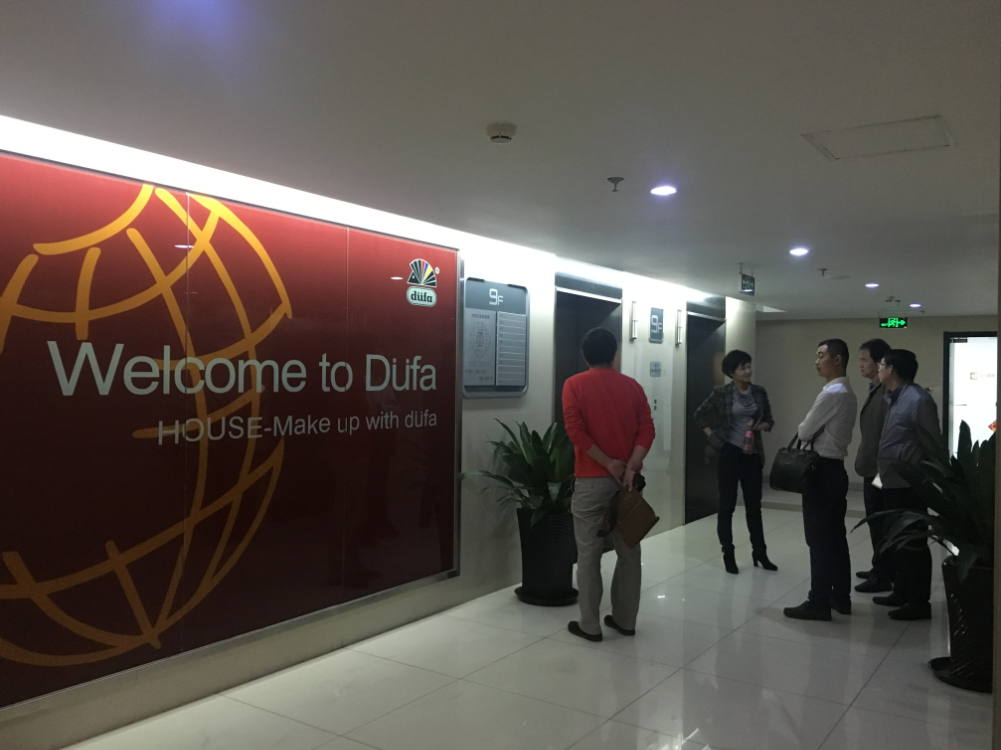 基建处氟碳漆材料考察小组——处领导张宽裕、韩静、朱军、工程一科、建材科、施工方代表赶赴北京市,于2016年10月11日上午考察徳国都芳漆中国总部, 下午考察该品牌生产工厂。